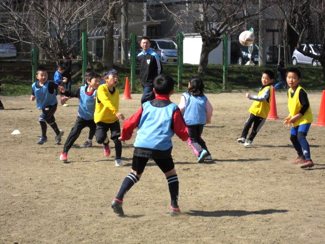 約1か月ぶりの屋外での練習! 3月の室内での座学を活かして練習できているかな? 体験入会の子も数名参加して、にぎやかなグラウンドです♪